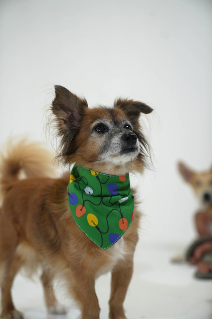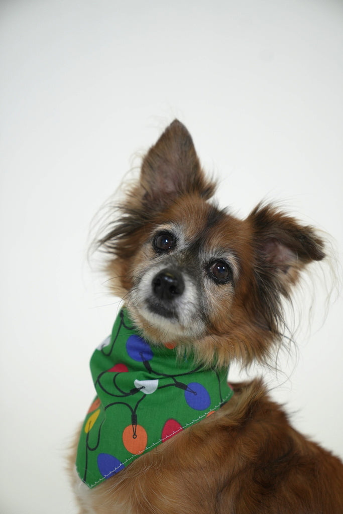 This 100% cotton bandana features a reversible Christmas lights print, great for X-Small to Small Dogs or Cats. You can easily attach the bandana using magnets or by fastening it to the back of your pet's neck.